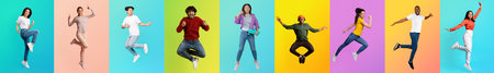People jumping joyfully in a colorful collage of diverse lifestyles