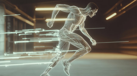 A striking illustration of a human figure in motion, showcasing anatomical details through dynamic lines. Perfect for fitness and technology themes.