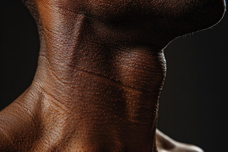 detailed texture of human skin, specifically focusing on the neck and collarbone area, highlighting the natural beauty of skin tones and subtle shadows