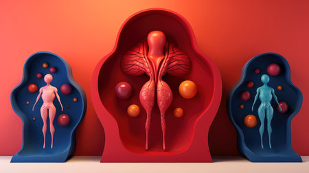 Digital illustration of female reproductive system in colour background
