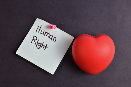 Heart-shaped object beside pinned Human Right note visual metaphor linking compassion and emotional value to universal human dignity