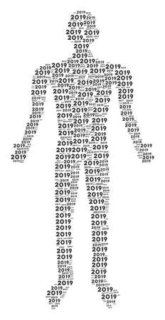 2019 year text man representation. Vector 2019 year text icons are formed into male illustration.
