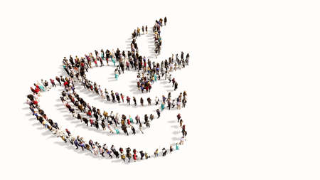 Concept or conceptual large community of people forming the image of a hot cup of tea on white background. A 3d illustration metaphor for traditional medicine, relaxation, health and diet
