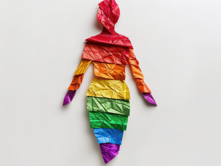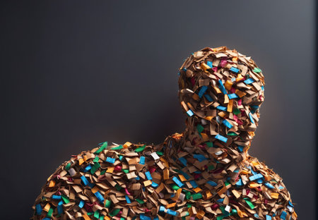 Artistic Representation of a Human Figure Covered in Colorful Shavings in Studio Setting