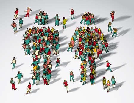 Abstract silhouette filled with colorful crowd imagery representing unity and diversity, showcasing human emotions and connection in a modern artistic style