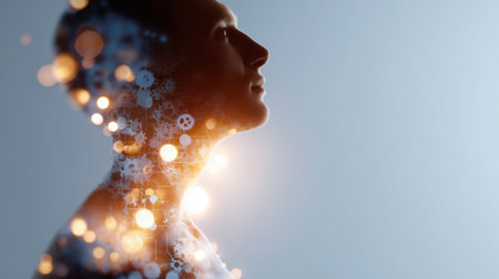Intricate clockwork mechanisms forming a human silhouette, exploring the concept of inner workings and interconnectedness