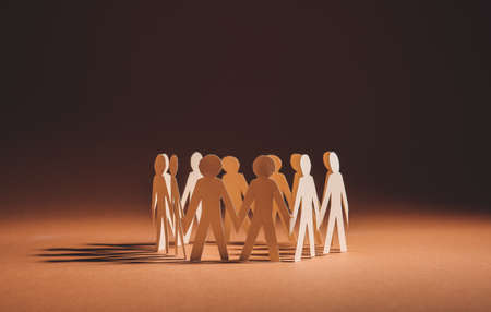 Circle made of paper human figures on table. Unity concept