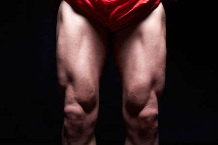 male muscular legs. body-building. muscle man in red sport panties