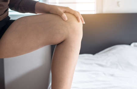 Woman with cellulitis on leg excess and overweight fatty of female