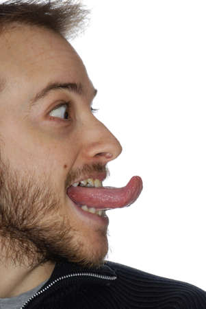 Closeup photo of man showing his tongue