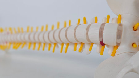 Detailed view of a human spine model, focusing on the vertebrae and alignment, medical concept
