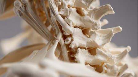 This close-up image showcases a detailed human spine structure, focusing on individual vertebrae and their connections, ideal for educational and medical use.