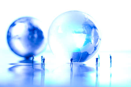 globe and miniature people