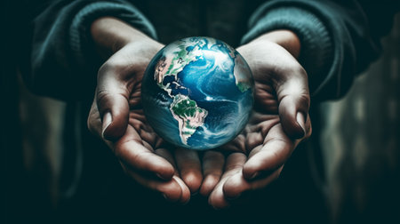 Generative AI : Earth in human hands earth day energy saving elements of this image furnished by NASA