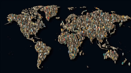 Conceptual demographic growth illustrated with modern social population visuals..