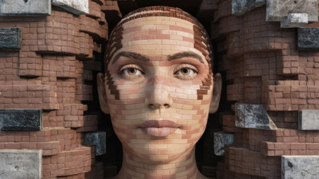 A womans face made of bricks in a brick wall, AI