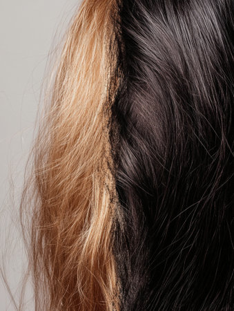 This macro shot captures the delicate details of a broken hair strand highlighting its color variations and texture under soft indoor light.