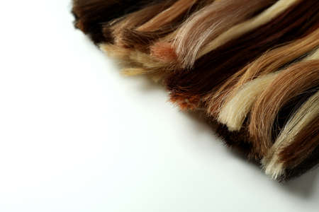 Different color female hair on white background