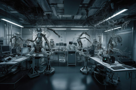 a room filled with robots, each one programmed to perform a specific task, created with generative ai