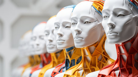 A group of robot androids with helmets on, AI