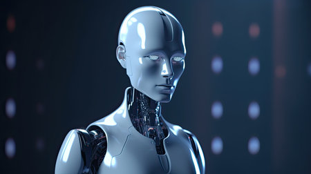 AI Generated. Futuristic humanoid robot with sleek design and advanced technology in a modern environment