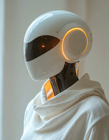 Futuristic Cyber Robot with Human Face Mask. AI generative