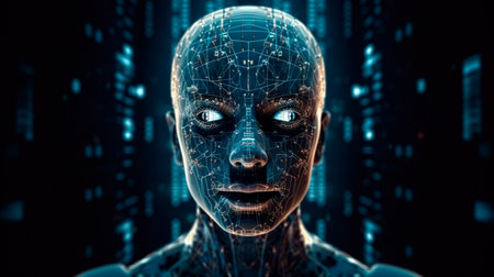 The photo depicts the concept of artificial intelligence and machine learning, highlighting the role of technology in shaping the future. Generative AI