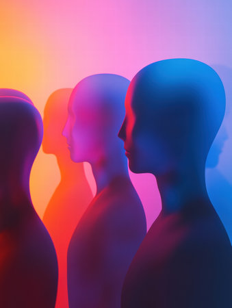Spectrum of human profiles in vibrant colors against a minimalist background, diversity and inclusion concept.