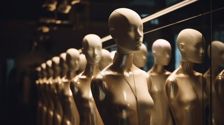 Mannequins made of artificial material stand in rows,Generated by AI