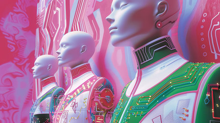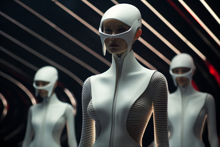 a group of female robots standing in front of each other