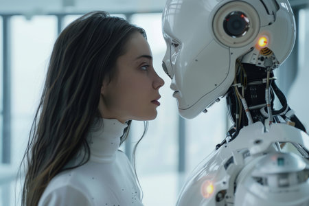 A love relationship between a human and an android robot. Humanity and artificial intelligence.