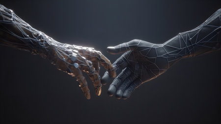 Robotic hands connecting a symbol of advancements in ai and machine learning technology