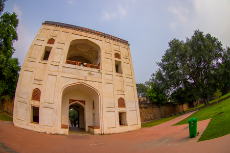 New Delhi / India - April 13 2017: entrance gate view from the Humayun's Tomb in New Delhi, India.