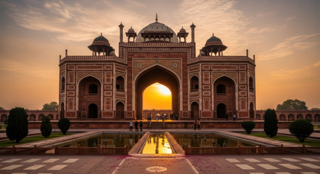 Sunset view of historic mughal architecture at humayun's tomb, delhi