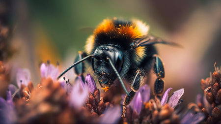 Generative AI : Bumblebee pollinating a hallium purple flower