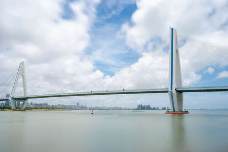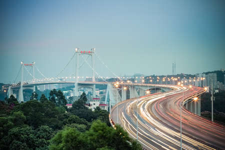 beautiful xiamen haicang bridge in nightfall ,fujian province ,China