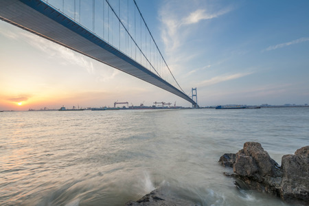 Jiangyin Yangtze River Bridge at sunset in the evening