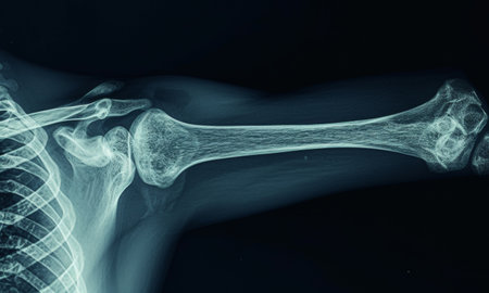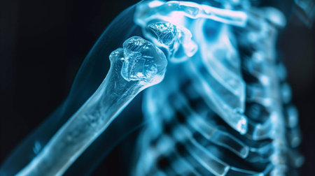 Radiograph of the shoulder anatomy with clavicle, scapula, and humerus AI generated
