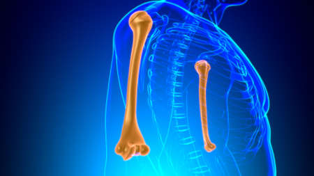 3D Illustration Concept of Human Skeleton System Humerus Bone Joints Anatomy