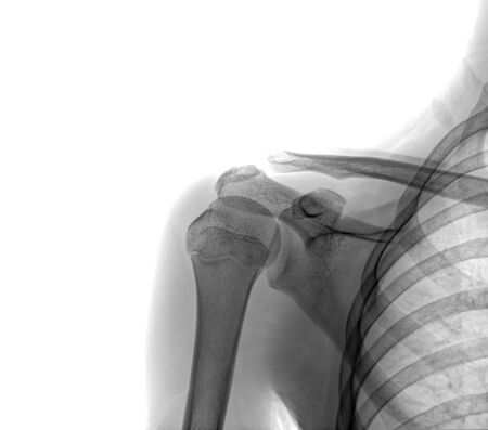 Xray image of shoulder isolated on white background, space for your message and idea medical concept