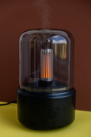 Aroma oil diffuser lamp on a table. Aromatherapy and health care concept.