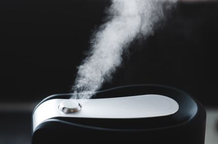 Humidifier with steam jet on a black background. Humidity in the room, maintaining the microclimate in the apartment.