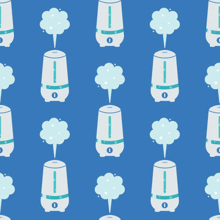 Humidifier on a blue background. Vector seamless pattern in cartoon style.