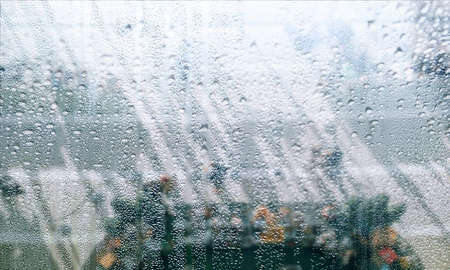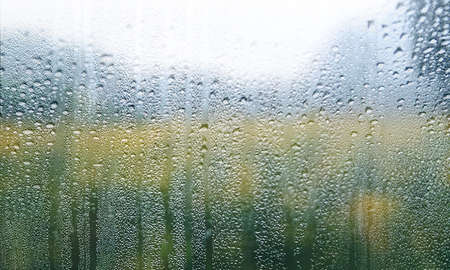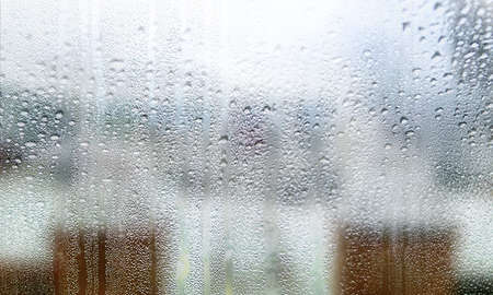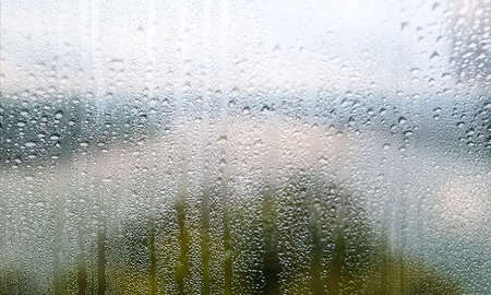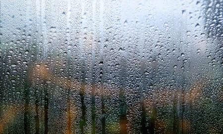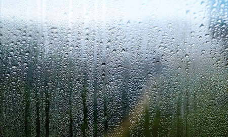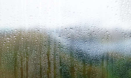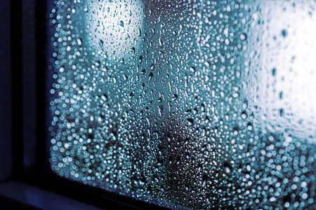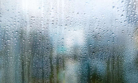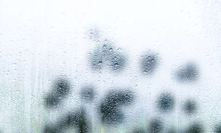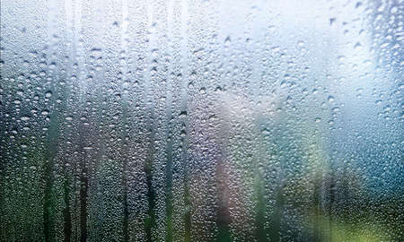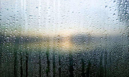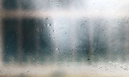 Condensation on the window. Water drops on the glass. Rainy weather.