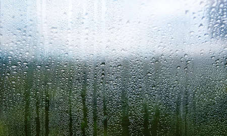 Condensation on the window. Water drops on the glass. Raindrops on the window.