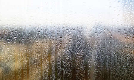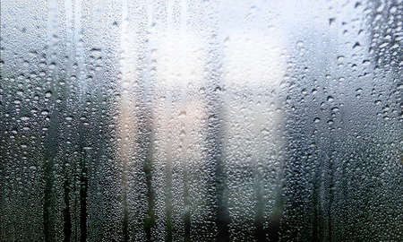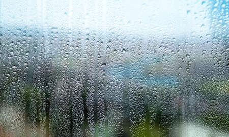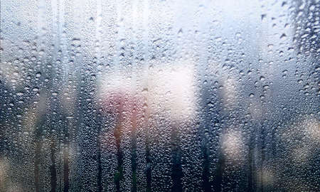 Condensation on the window. Raindrops on the glass. Blurred background.