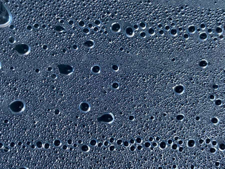 Background with rain drops close up. Rain drops on outdoor window, Closeup view transparent water drops on glass surface, humid water backdrop, blurred background with copy space for your text