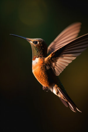 An AI generated illustration of a vibrant hummingbird in mid-flight