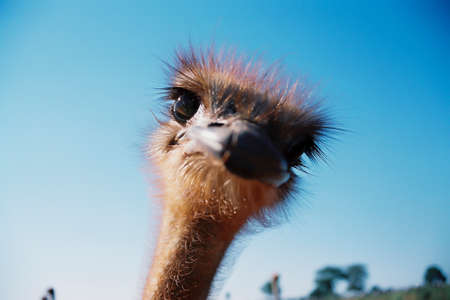 Portrait of giraffes against the blue sky. Wildlife scene with animal.Â
