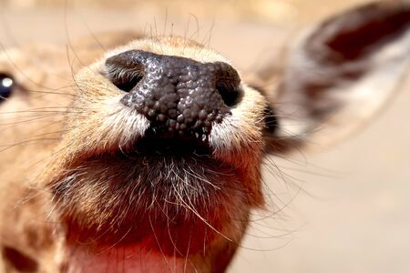 Closeup of a wet nose of fallow deer fawn in ZOO safari Fasano in Italy, region of Apulia, Adriatic See